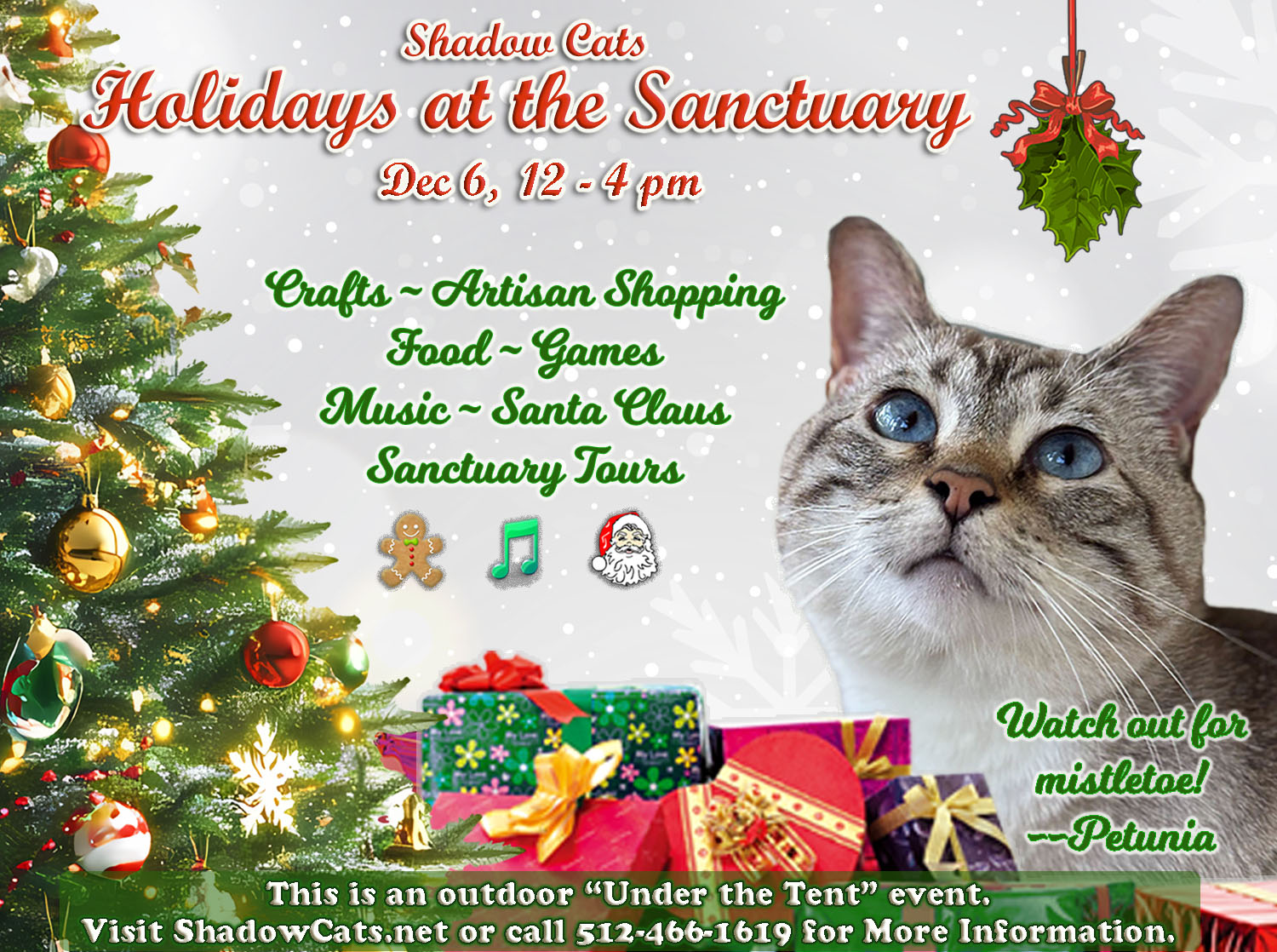 This will be an outdoor “Under the Tent” event, but you’ll be able to tour the grounds, see the catios, and see many of the cats. We’ll also have group tours inside the Sanctuary.