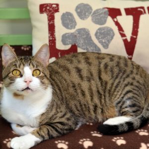 Thank you to Barney’s wonderful sponsor, Pam L. Thank you to the volunteers whose hearts were captured by Barney’s chubby cheeks, snaggletooth, and the lazy paw that so often draped off the side of the cat tree. Thank you to the staff who made Barney’s short stay the most memorable few months of his life. He was so lucky to have you. Thank you to the wonderful care he received at Vista Vet. And, of course, thank you to anyone who looked at Barney’s sweet little face and melted at the sight. We know, we did too.