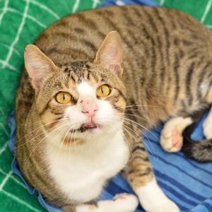 We’re sure it never would’ve crossed your mind that such an adorable little guy could’ve been found outside of a Family Dollar. Friendly and talkative, this parking lot stray caught the attention of someone who fell in love with him because of his sweet temperament. When they took him in to be fixed, unfortunately, he tested positive for feline leukemia.