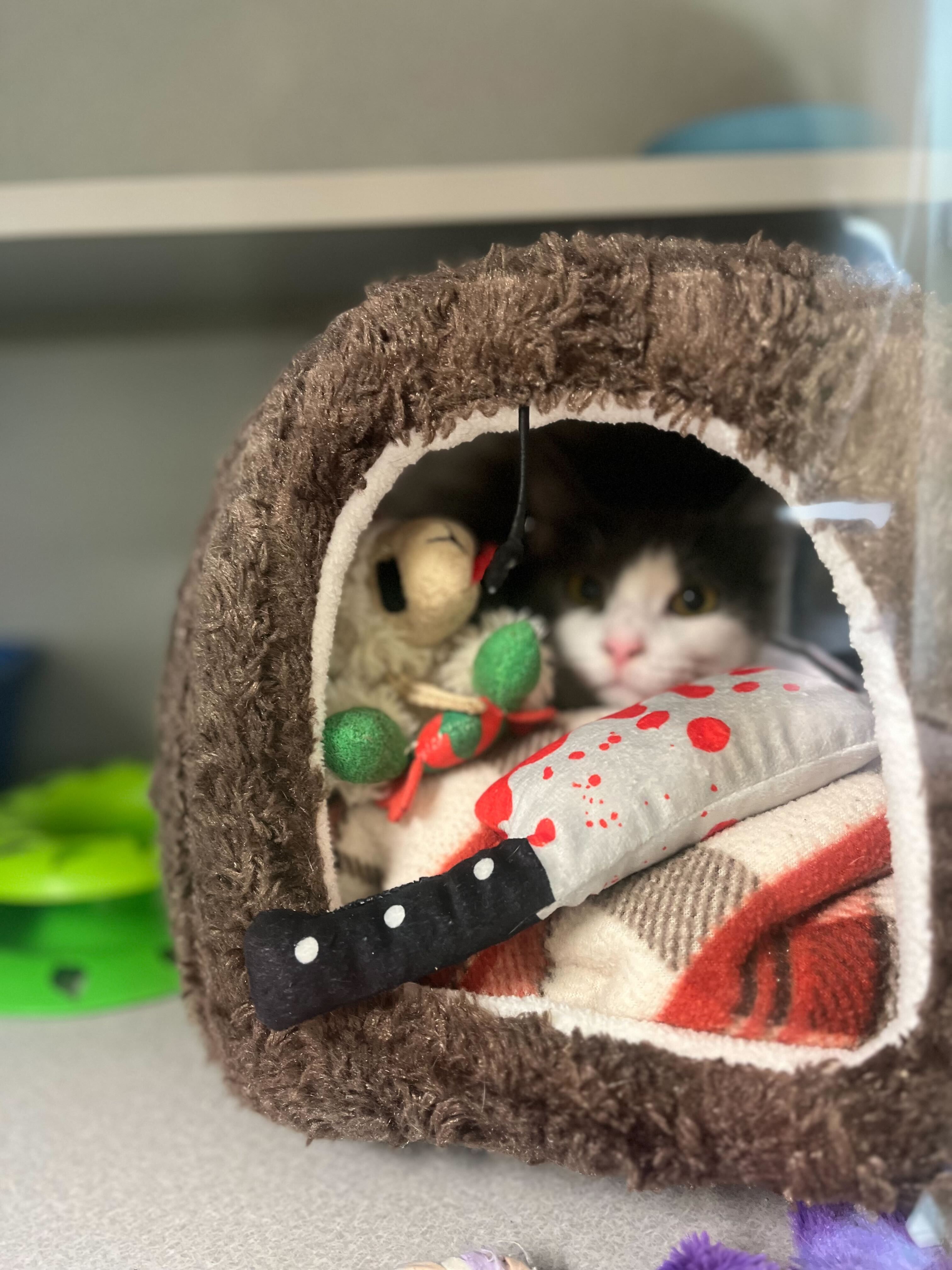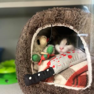 Now safe at Shadow Cats, Coraline is beginning the next chapter of her journey. While she’s still shy at first, a few quiet minutes reveal her for what she truly is: a sweetheart through and through. We can’t wait to watch her flourish in Cookie’s Place, build friendships with other cats, and discover the joy of sanctuary life.