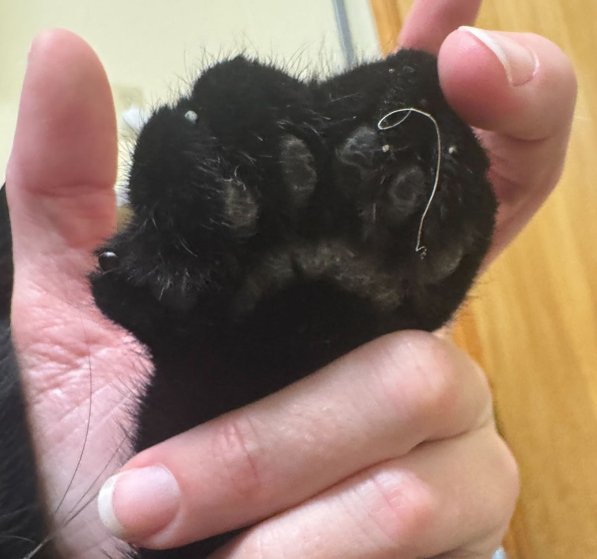 But Mr. Toes’ saviors didn’t feel so lucky when they had to find another solution for him. They rescued this sweet black kitty from the streets on May 31st, 2025 and immediately fell in love, planning to keep him. An understandable response, honestly, for such a charming cat…with 24 toes! 6 whole extra toes! Talk about four-wheel drive. They made plans to fix him and introduce him to their other cats, but never got the chance when he came back positive for both feline leukemia and FIV.