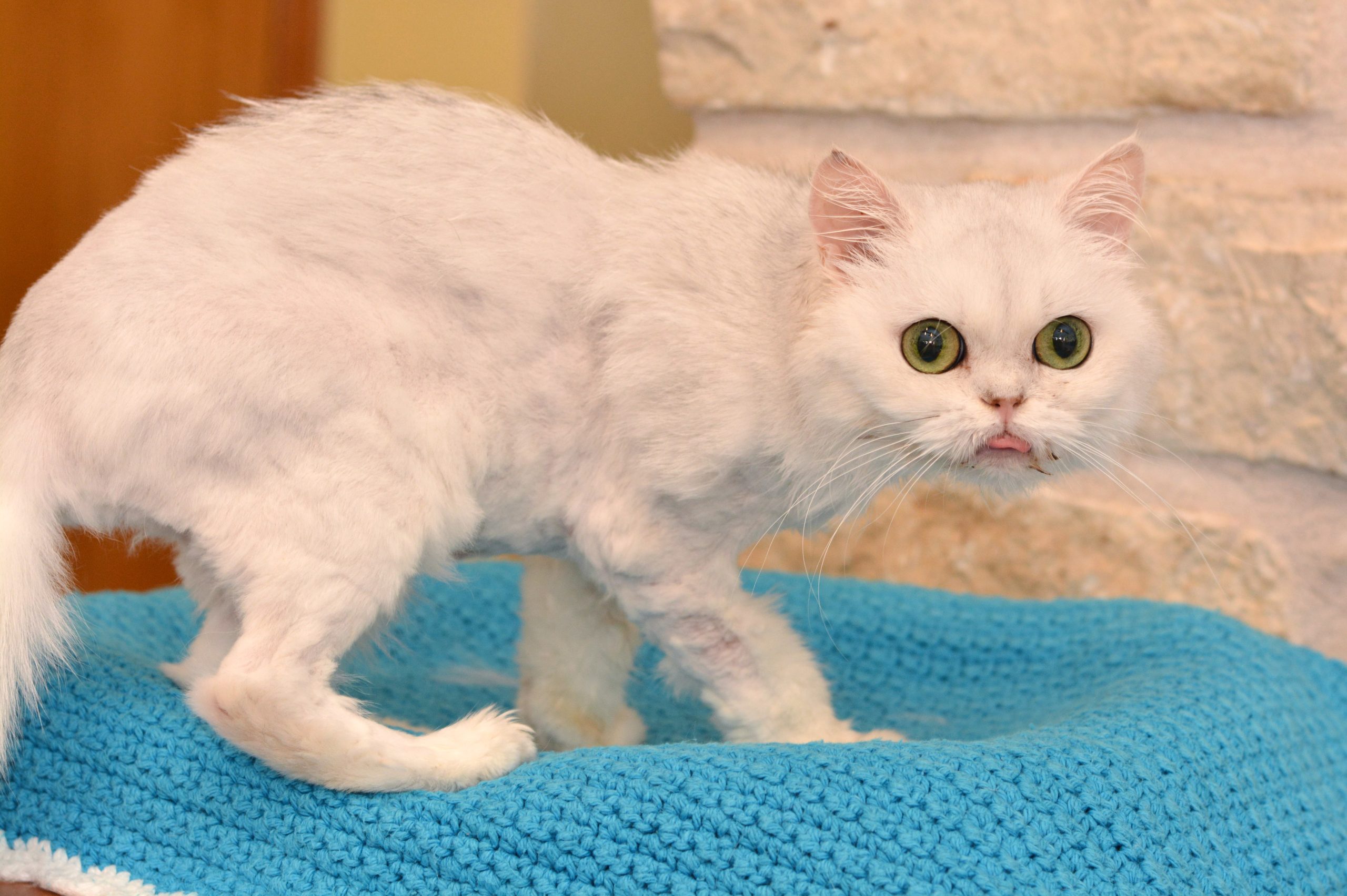 Yzma’s story at Shadow Cats started on a Thursday. Our Director received an email from Austin Animal Services regarding an alleged feline leukemia-positive Persian. Her coat was severely matted, the beautiful silver shimmer to her white fur dulled by time and dirt. Her big, round eyes were accented not by a natural eyeliner, but by a teary discharge. She tucked her body in the back of the kennel, and though she was sweet as could be, it was apparent that she hadn’t known a loving touch in some time.